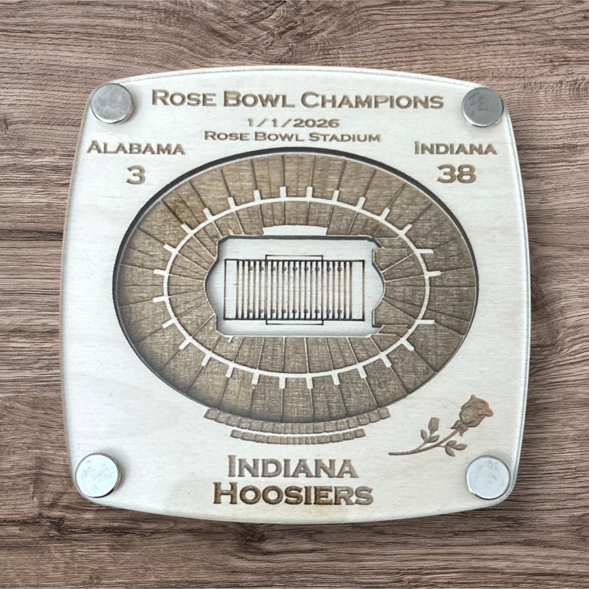 Introducing our meticulously crafted College Rose Bowl Championship Stadium Coasters for 2026, 1/1/2026. The perfect blend of elegance and sports enthusiasm. This coaster is a must-have for all Indiana Hoosiers fans. What a wonderful way to remember this memorable day for Indiana. An exceptional gift for those who cherish their team.